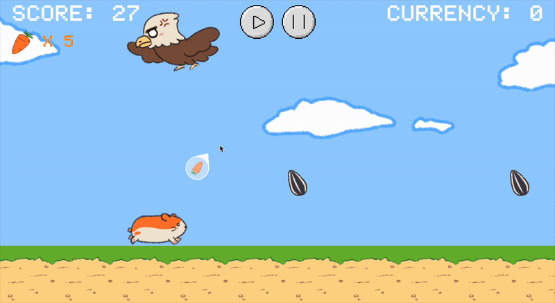 “save Hamtaro’ is an infinite runner game in which the player controls Hamtaro and tries to run for as long as possible while dodging obstacles, collecting sunflower seeds (currency), and various power-ups. All elements of the game were designed and developed by my team and I, which consisted of Computer Science, Electrical Engineering, Computational Biology, and Design students. Give it a play!: https://awang9415.itch.io/save-hamtaro?secret=2l9CY0SiaSb9vQ6n1EFX0tlVZHc